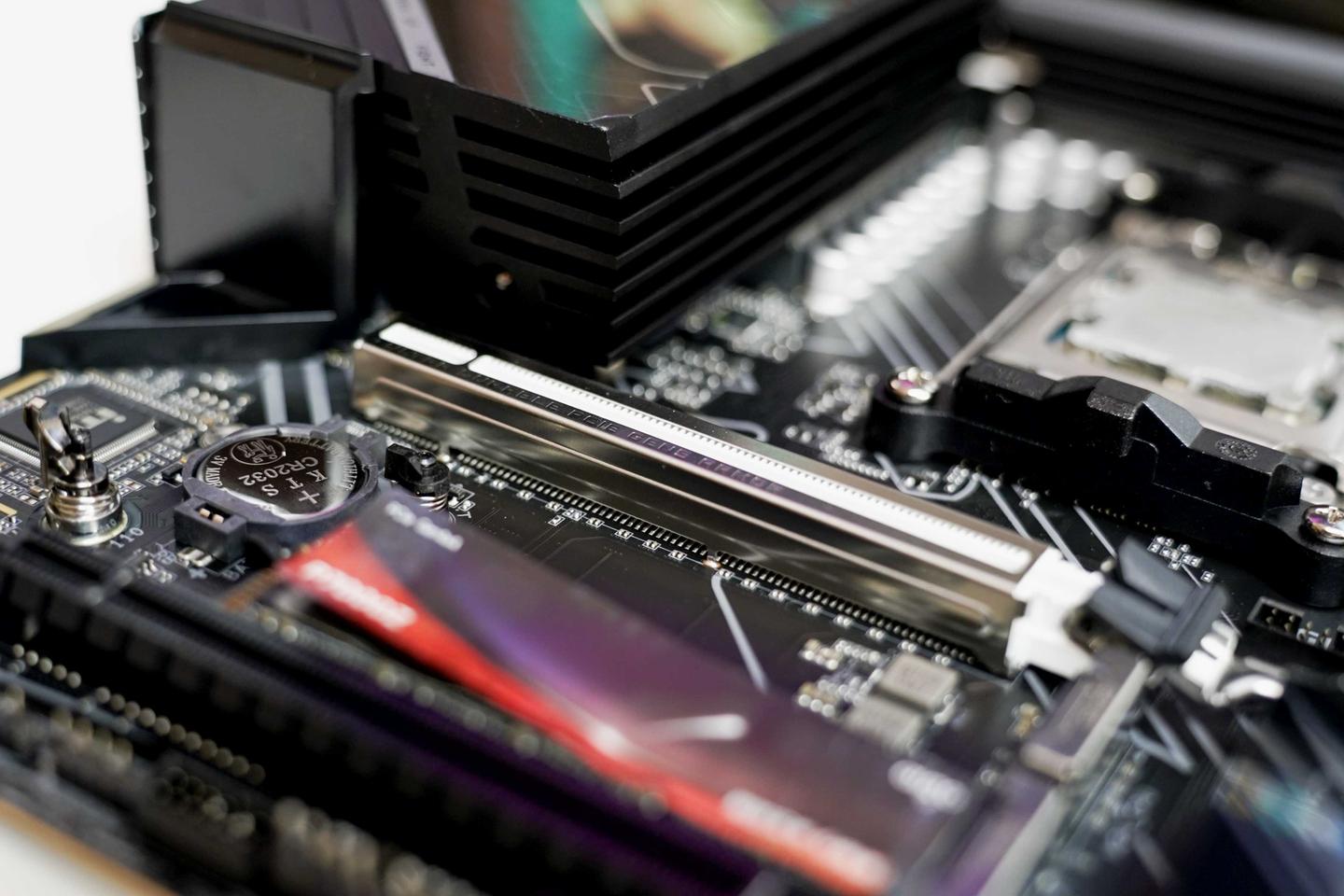 拆解显卡按下内存槽右下的按钮即可解锁,和我一样的大手用户不用再拿螺丝刀捣,也是目前中高端主板的标配设计,这点御三家都差不多。