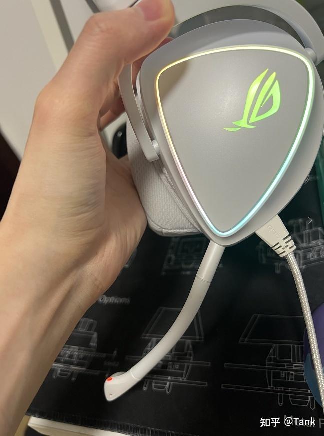 ROG 耳机里面唯一一款白色的耳机,也是最便宜的支持 ROG 自家神光同步效果的耳机,所以称为限定白!