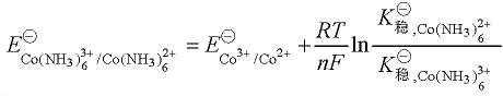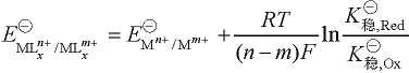 式中,m、n为正整数,且n >m;x为配体 L 的数目。依据此公式可计算出金属离子形成配合物后,其配离子间电对的标准电极电势值。