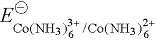 加载中...,是很强的氧化剂,所以不能在水溶液中制备三价钴盐。如在 Co3+中加入氨水生成稳定配合物后,则电极反应为: