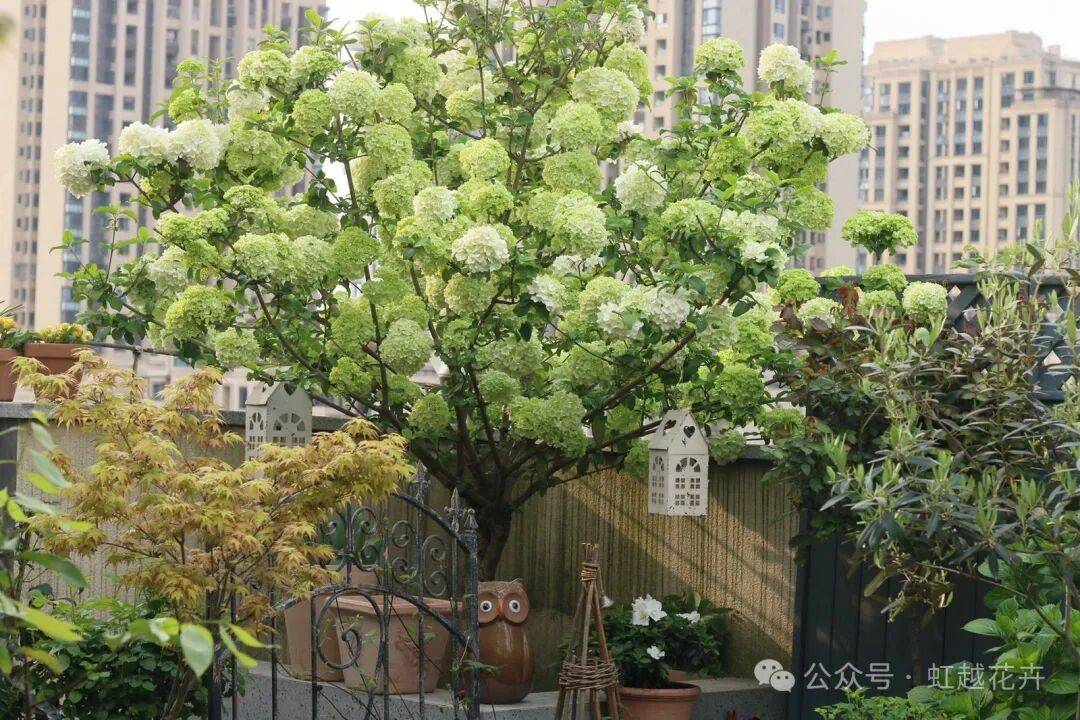 但没有院子也没关系,毕竟木绣球长得慢,秀丽挺拔的它放在花园或者阳台里也是非常优秀的骨架植物。