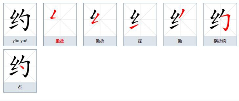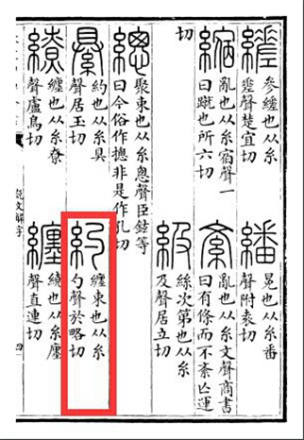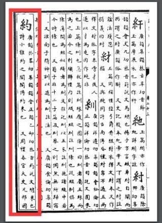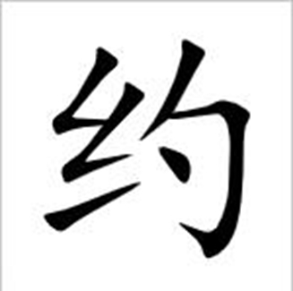 约,缠束也。从糸,勺声。於略切。注曰:束者、缚也。引申为俭约。 [1] [7]