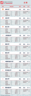 清华大学、北京大学、浙江大学蝉联主榜(即综合性大学排名)前三位。北京协和医学院位列医药类大学排名第一,上海财经大学位居财经类大学排名榜首,北京外国语大学名列语言类大学排名第一,中国政法大学位列政法类大学排名榜首,中央民族大学占据民族类大学排名首位,上海体育学院领跑体育类大学排名,香港中文大学(深圳)在中国合作办学大学排名中夺冠。