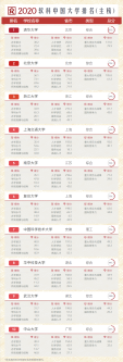 2020年5月15日,软科发布2020软科中国大学排名,设置了1个主榜(综合性大学排名)、6个单科性大学排名、3个非公办大学排名,以及艺术类高校名单。 [2] [15]