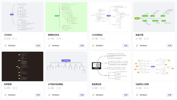 MindNow是一款在线专业思维导图工具,提供上百种好看又清晰的思维导图模板,可免费使用。