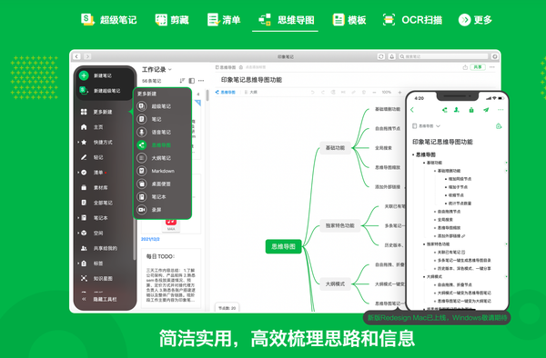 利用印象笔记,你可以制作思维导图、超级笔记,从文字、图片、录音、清单到网页、文档和附件,都可以随时随地记录。