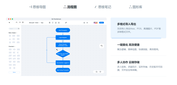 可以制作多种包括思维导图、流程图、原型图、UML、BPMN、网络拓扑图等多种图形绘制。