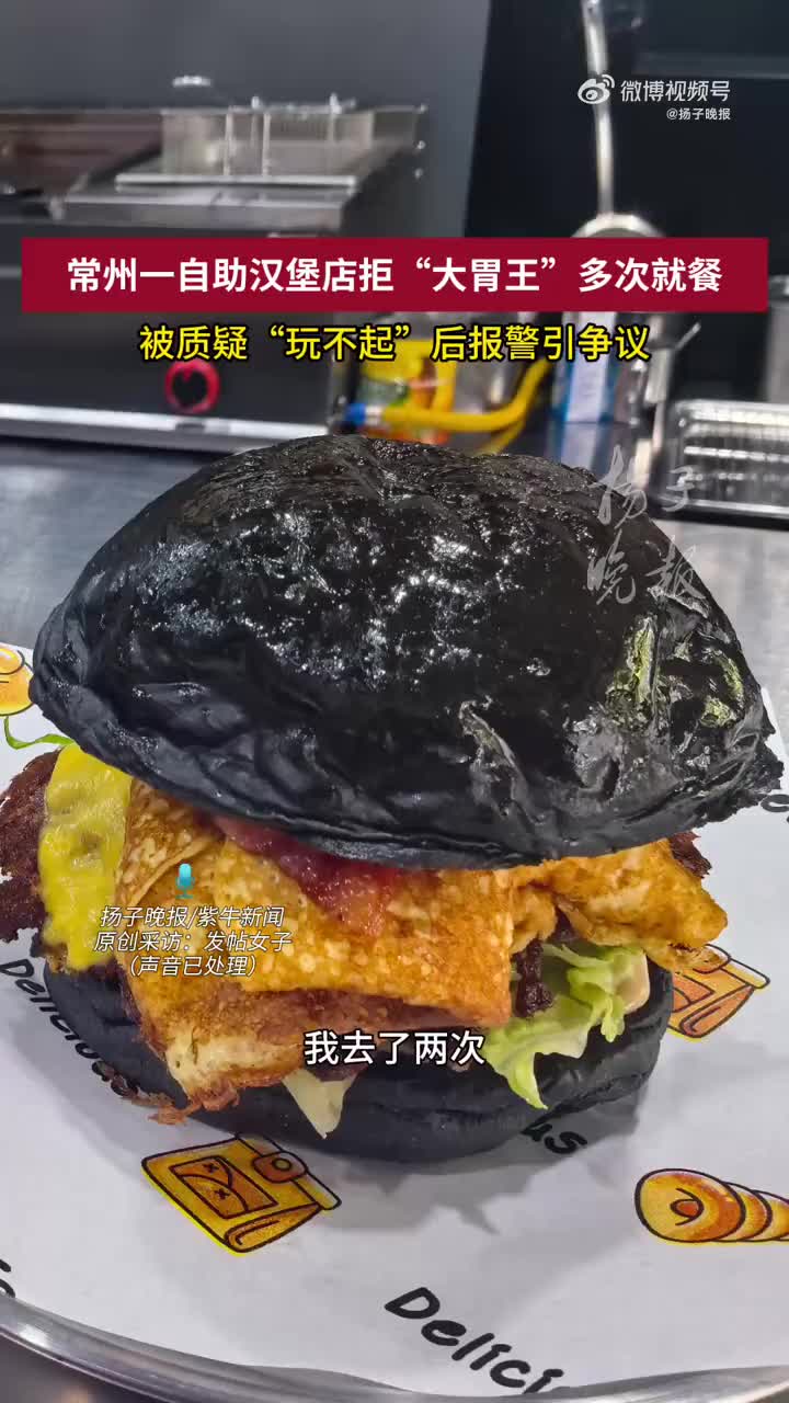 4月7日,女子发帖曝光常州某汉堡自助因自己吃得多被老板拒绝接待,还附上与警察的对话音频。记者采访了解到