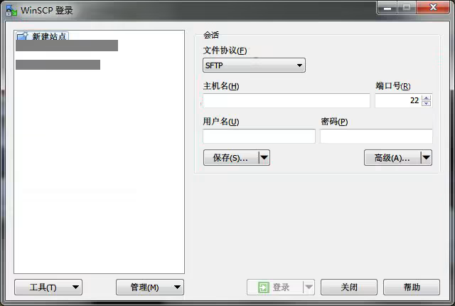2.1、打开 WinSCP,弹出WinSCP 登录对话框。如下图所示: