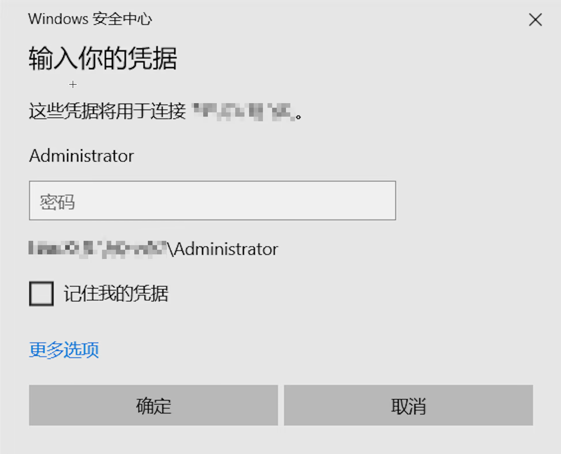 在弹出的 Windows 安全窗口中,输入实例的管理员账号和密码,如下图所示: