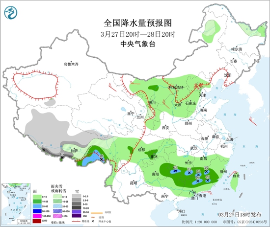 中央气象台2026年03月27日18时发布未来三天全国天气预报。详细