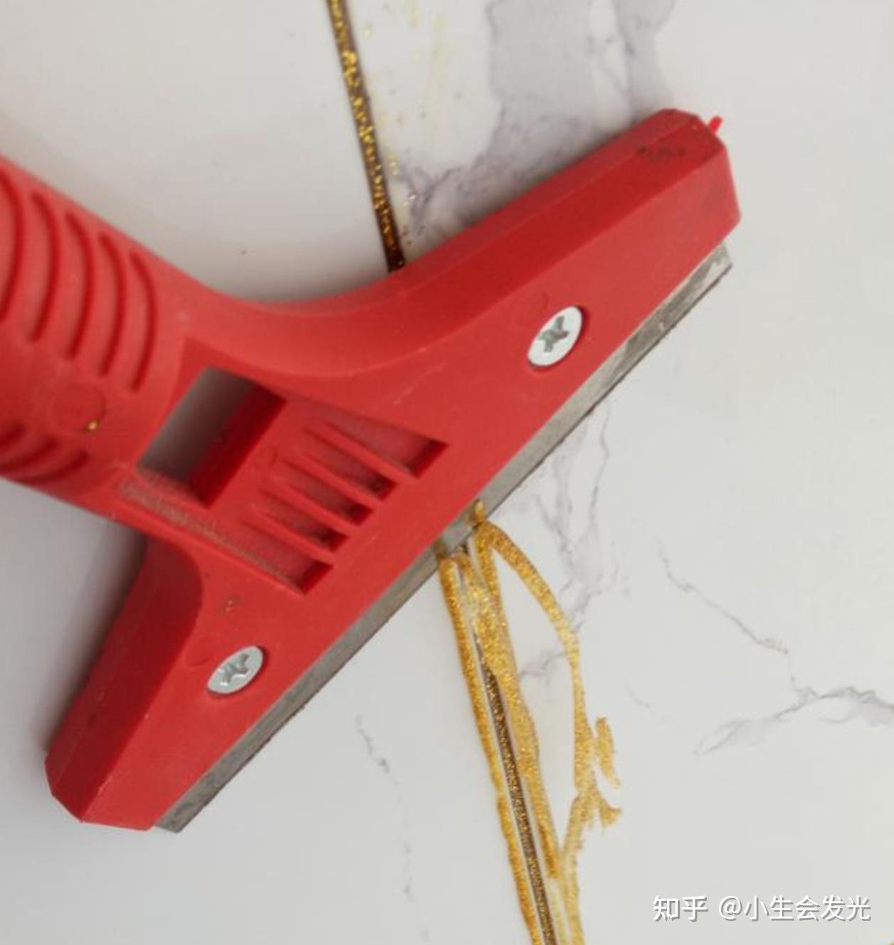 5.清理:用铲子紧贴美缝线条向前推动,把多余的美缝剂铲掉。