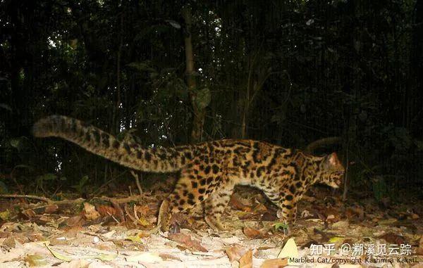 说到云猫,其实《世界哺乳动物名典》和维基上都是叫它“纹猫”,不过我觉得这名字有点歧义——有斑纹的猫太多了,到底谁是“纹猫”?所以我还是喜欢用《中国动物志》上的“云猫”这名字,而且云猫也俗称“小云豹”,它和云豹本来也很像。而“纹猫”这名字估计是从“石纹猫”改造来的,后者来自英文名marbled cat(大理石纹的猫)。