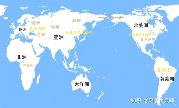 而狮子、花豹、美洲豹这三个关系较近,它们都发源于非洲,