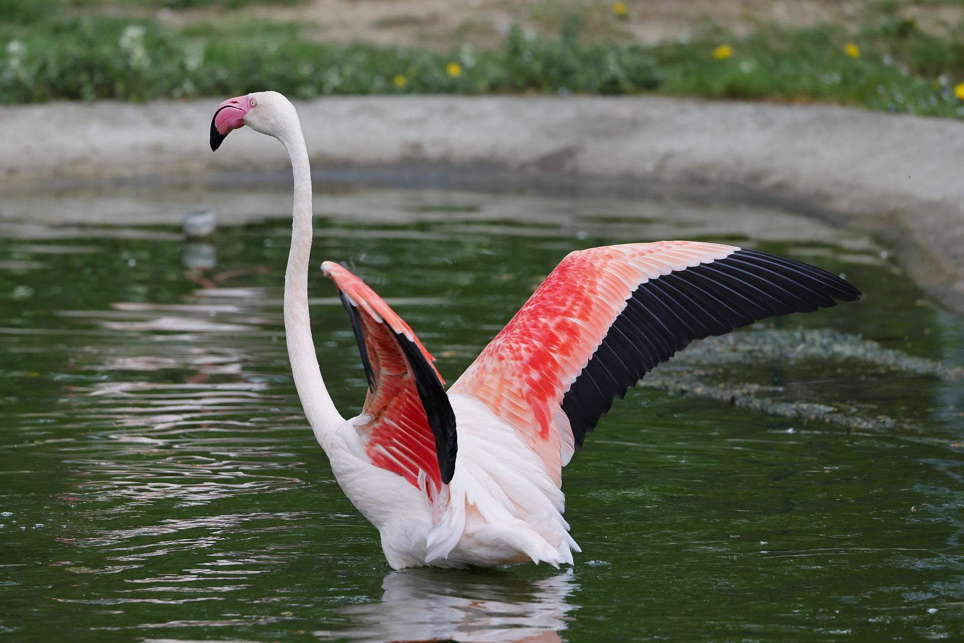 Flamingos are very beautiful birdsgenerally distinguished by the pink coloration of their plumagetheir long legs and their peculiarly curved neckwhich they can move in different directions. Depending on the speciesthey are found in AfricaAmericaAsiaor Europe. It is believed that the ancestors of flamingos were swimming birds. Today they are no longer diversbut continue to be associated with bodies of water.