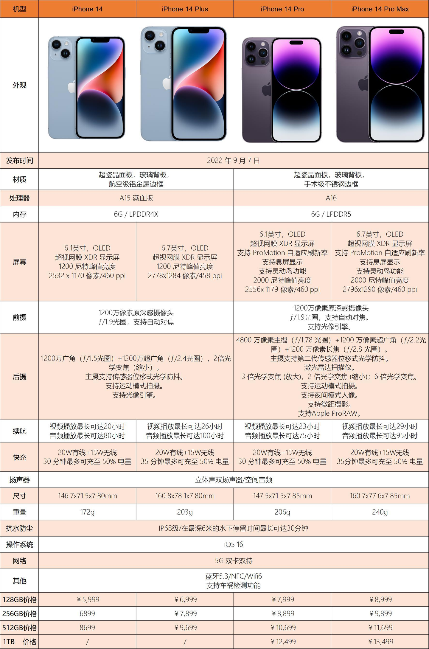 其中iPhone14 Pro和iPhone14 Pro Max的升级很大: