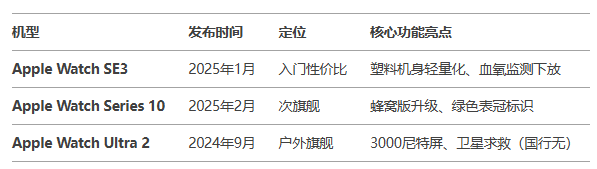 总结:2025年的苹果手表市场中,Series 10(补贴版) 以“旗舰功能+入门价格”成为性价比之王。除非你是硬核户外玩家(选Ultra 2)或预算极度紧张(选SE 3),否则这款闭眼入不后悔!
