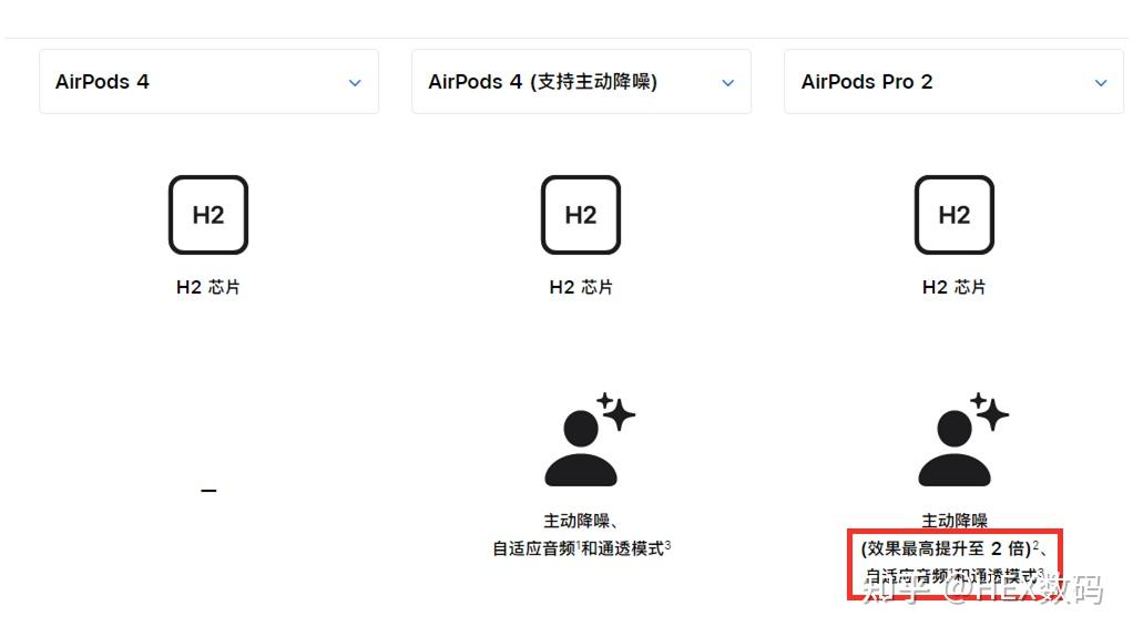 通过上面,AirPods 4和AirPods Pro 2最大的区别就在主动降噪功能。