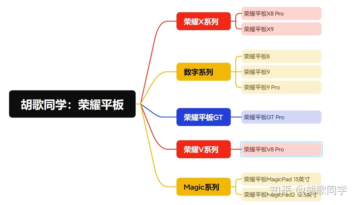 目前荣耀平板在售产品线分别有:荣耀Pad系列,从入门到旗舰,依次为:荣耀X系列、数字系列、荣耀V系列、荣耀平板GT系列和Magic系列。