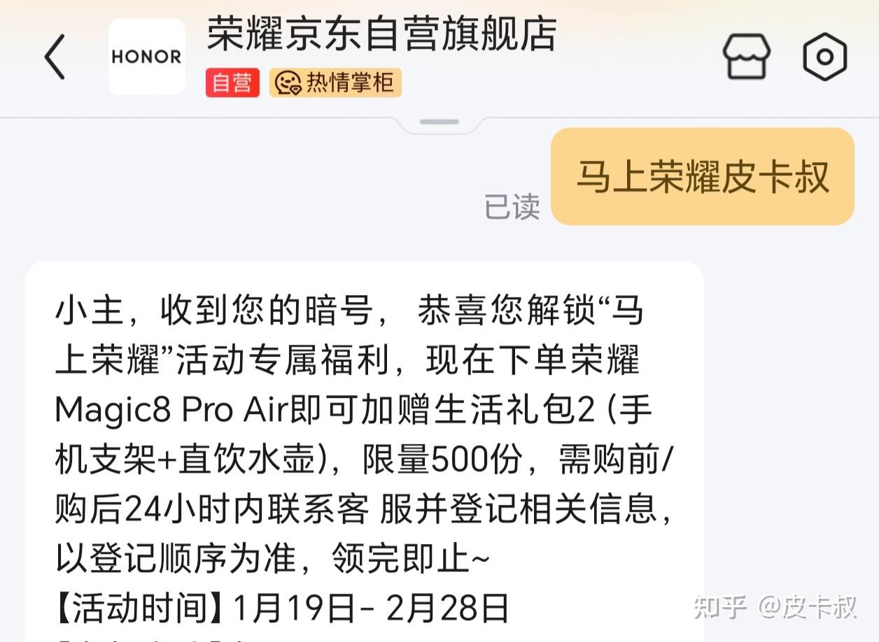 荣耀Magic8 Pro Air和荣耀500Pro暗号也有暗号:马上荣耀皮卡叔
