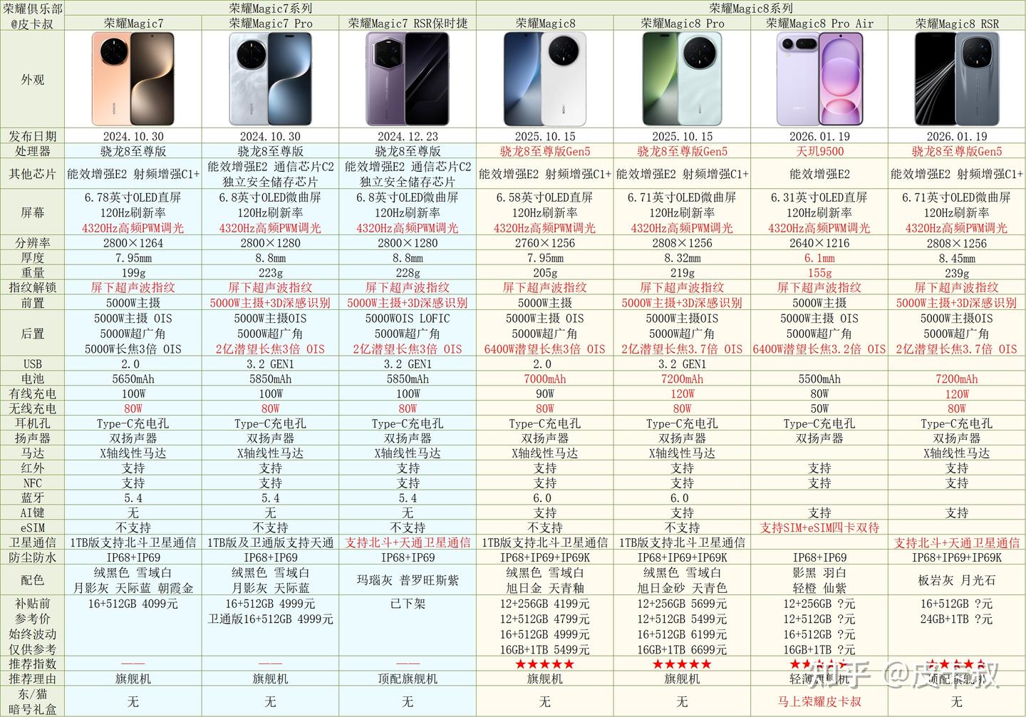 本篇主要介绍荣耀品牌各个系列的机型。长期更新维护,建议收藏。