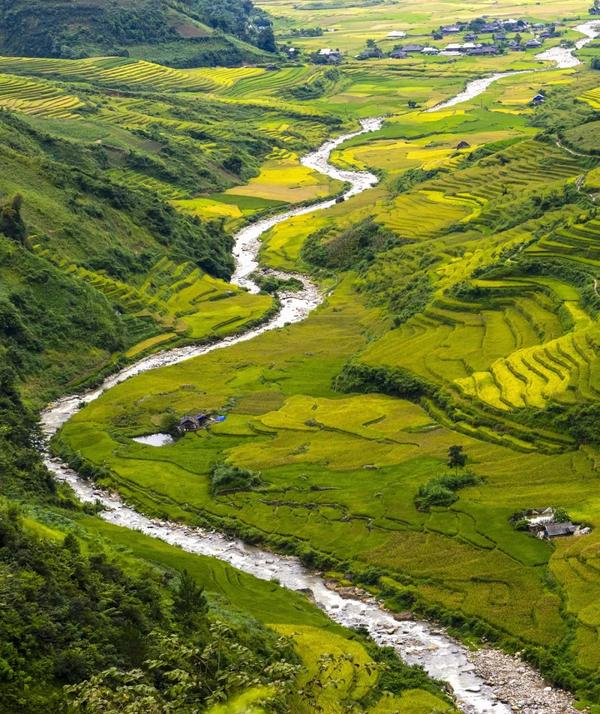 雨水沿地势顺流而下,又形成蜿蜒曲折的河流。