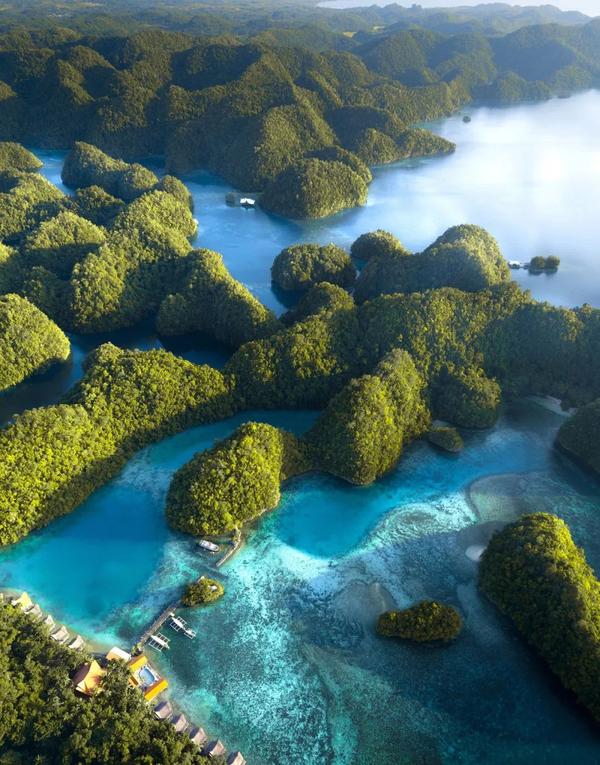 苏禄海中遍布着形态各异的珊瑚礁,珊瑚环礁的礁体围合成圆勾勒出潟(xì)湖的边缘。
