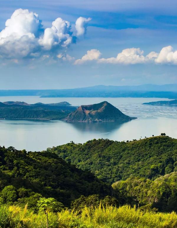 有的却“小巧玲珑”,塔尔火山海拔仅300多米,其“湖中有岛、岛中有湖”的景观更是难得一见。