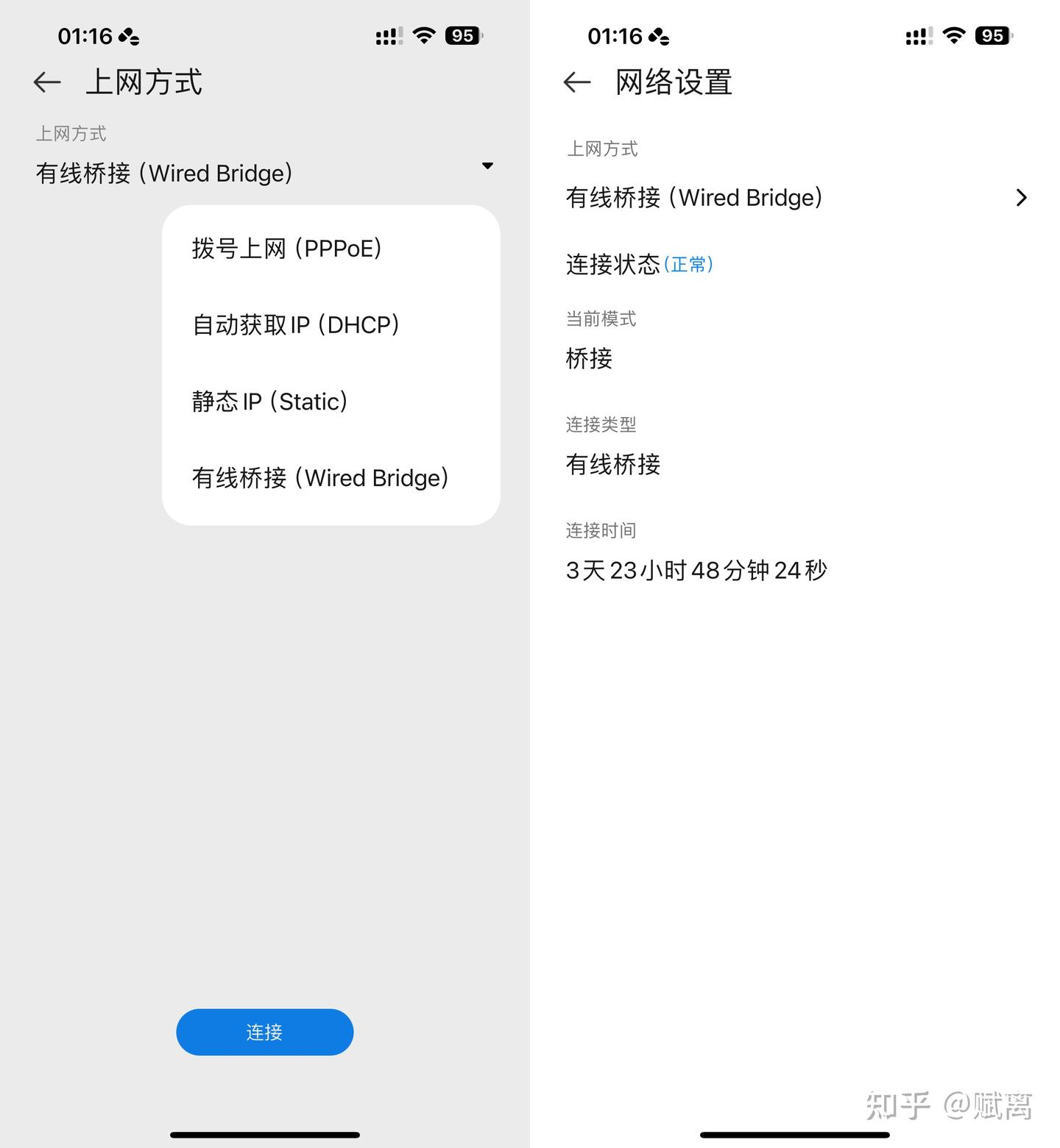 值得一题的是,中兴的星云晴天PoE套装在上网方式里支持有线桥接模式,这对我这种软路由用户十分友好,不用担心NAS、VR等设备跨层级传输的问题。TP-LINK S30和华为Q6子母路由则不支持有线桥接,尤其是TP-LINK S30作为偏企业向的产品,却没有这个选项,我是有点不理解的,希望他们能尽早跟进吧。当然,对于绝大部分普通用户,这一点不会有影响。