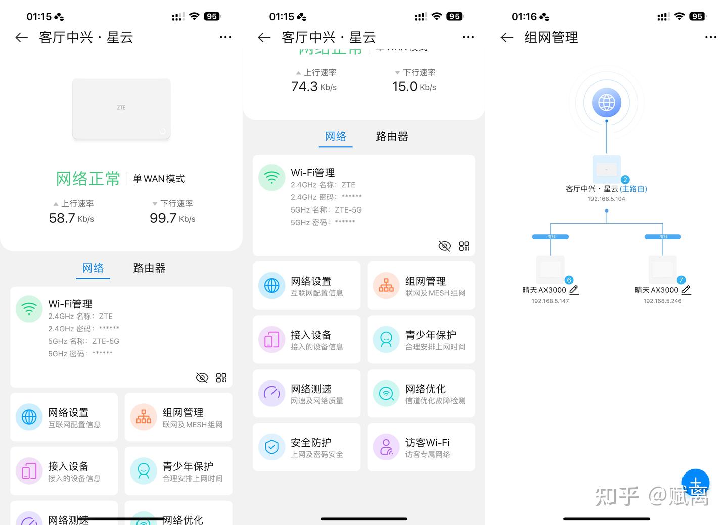 中兴这套方案兼顾了有线Mesh子路由的散热和稳定性,也实现了类似AC+AP方案的性能效率,非常有趣。但这种方案是否可靠,是否美观且易用,还是需要拿事实来说话。