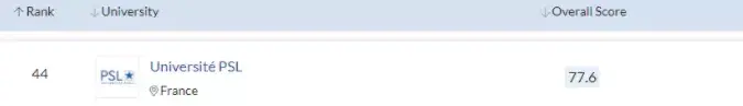 泰晤士年轻大学排行榜全球第2名,全法第1名。