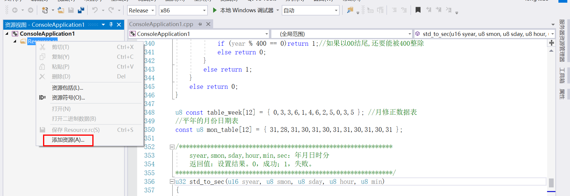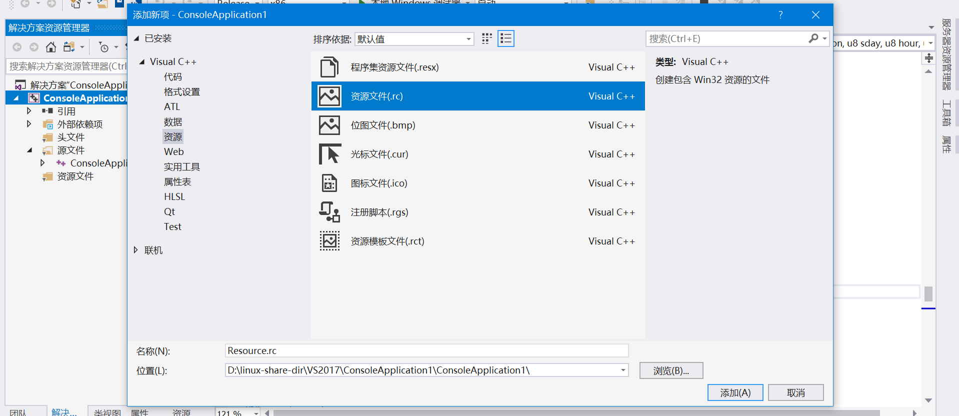 【2】选项资源—>资源文件(.rc)—>最后点击添加。