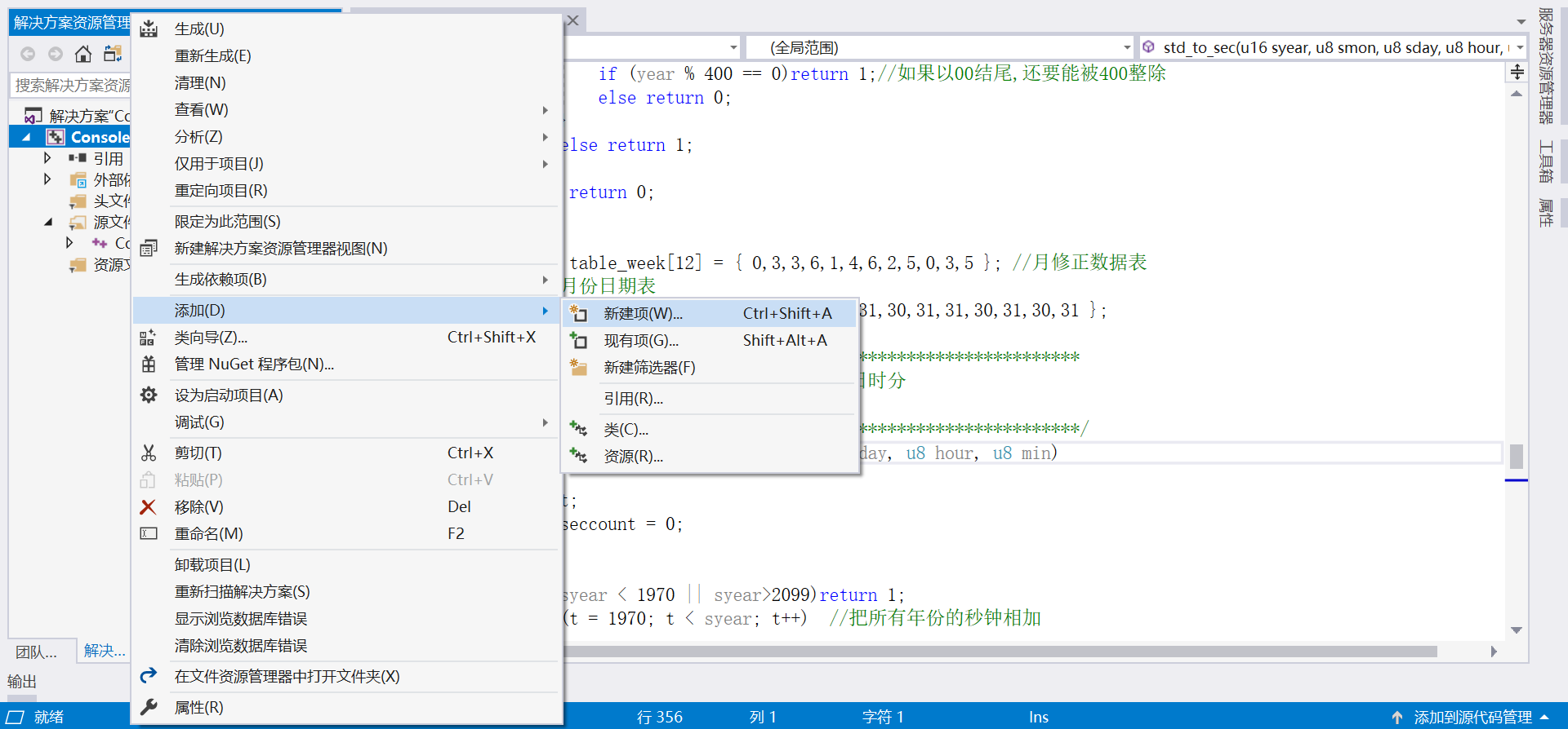 【1】选择左边项目选项卡,鼠标点击右键,点击添加,选择新建项。
