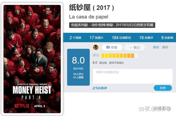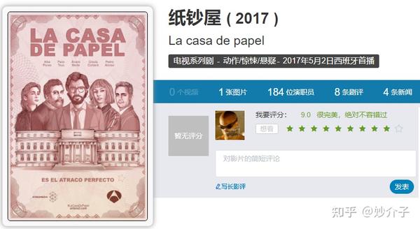 2017年上线的电视剧《纸钞屋》更是成了悬疑剧的代表作,每一季都是优秀高分作品。