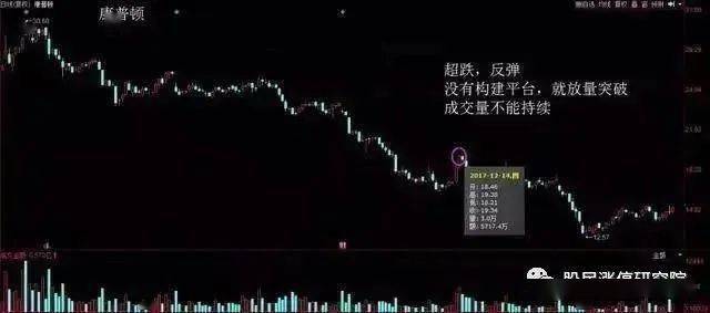 超跌后的反弹放量,一般都是下跌中继。和低位平台突破放量不同的是,超跌都得反弹没有出现横盘的“平台”。