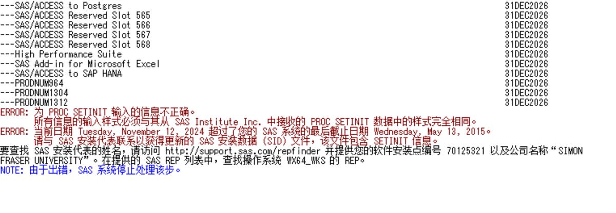 ERROR: 软件安装点验证数据无法更新。这很可能是由于 SASHELP 目录在写入模式下不可用,以及/或使用 SAS 命令时 SETINIT 选项尚未指定。