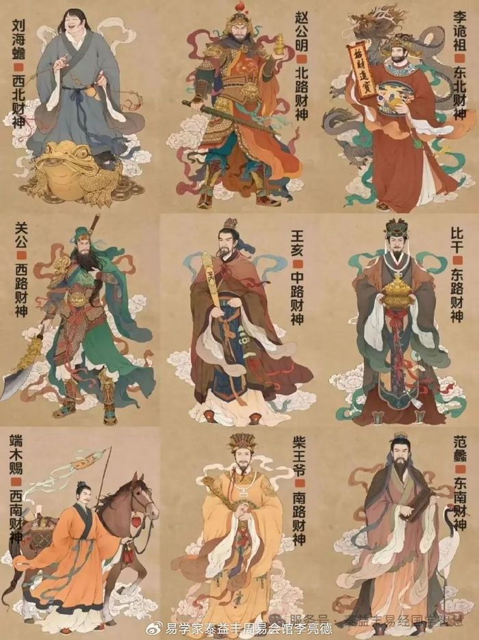 泰益丰周易会馆 玄学家李亮德老师说:这就是民间的九路财神。虽然祭祀不同,全国各地却都有祭祀财神的踪迹。这是一份寄托,是人们对大吉大利、平安富贵的美好愿望!愿大家都能效仿财神精神,得财神护佑,做真人财神,造福大众!