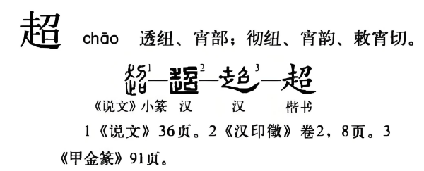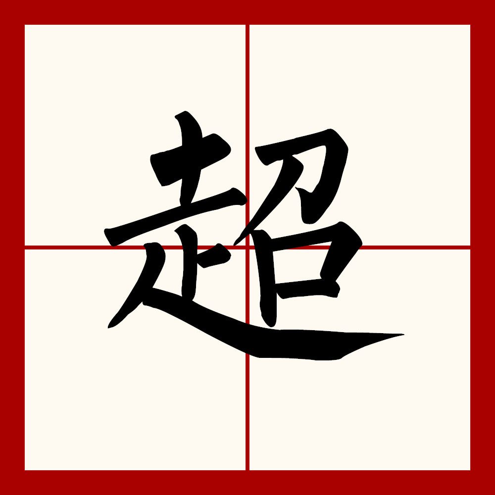 | chāo | 动词 | 跃上;跳过,跃过 | jump into;jump over | 东汉·许慎《说文》:超,跳也。《史记·白起王翦传》:方投石超距。 | 超乘、超足、超步、超次 |