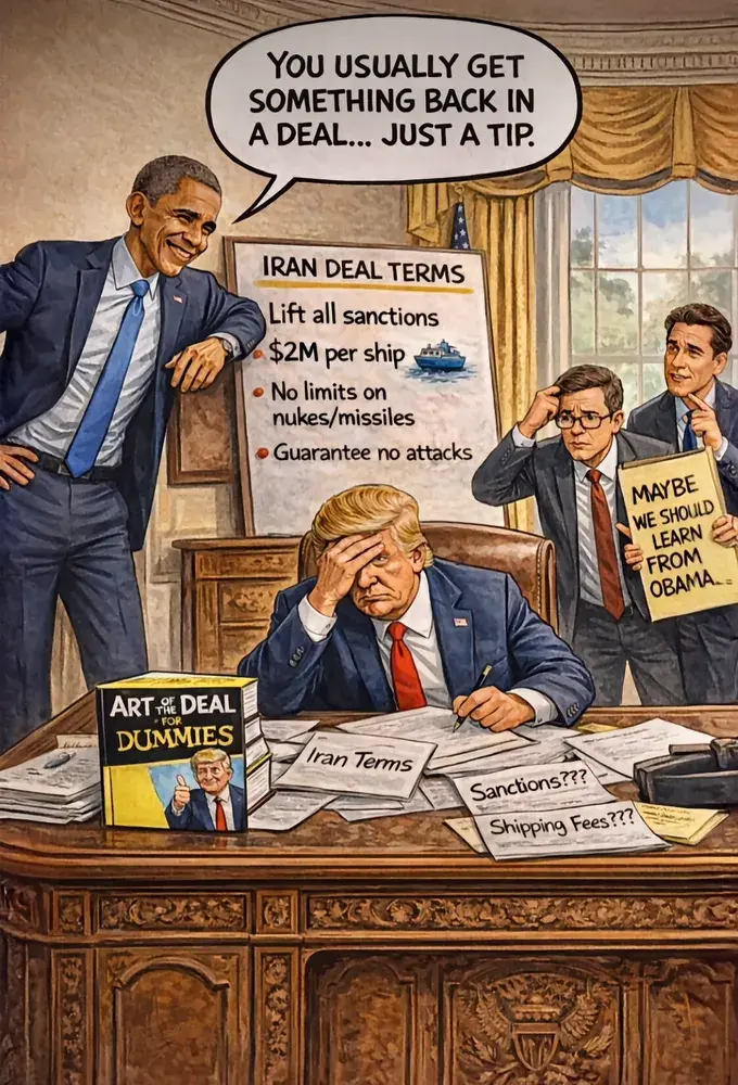 I think you’re kidding but sometimes on here you cant tell. I bet some MAGAts do believe this is Obamas fault.Obama is responsible for the Strait being closed