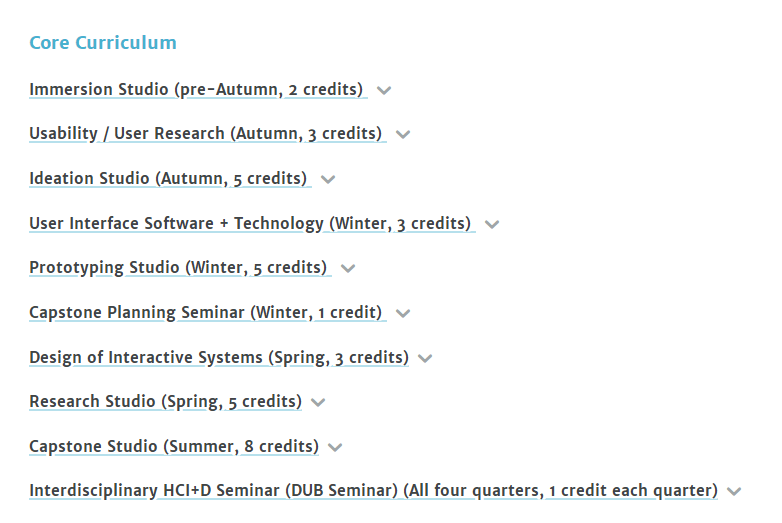 UW共开设了两个有关HCI的硕士课程,分别包括: