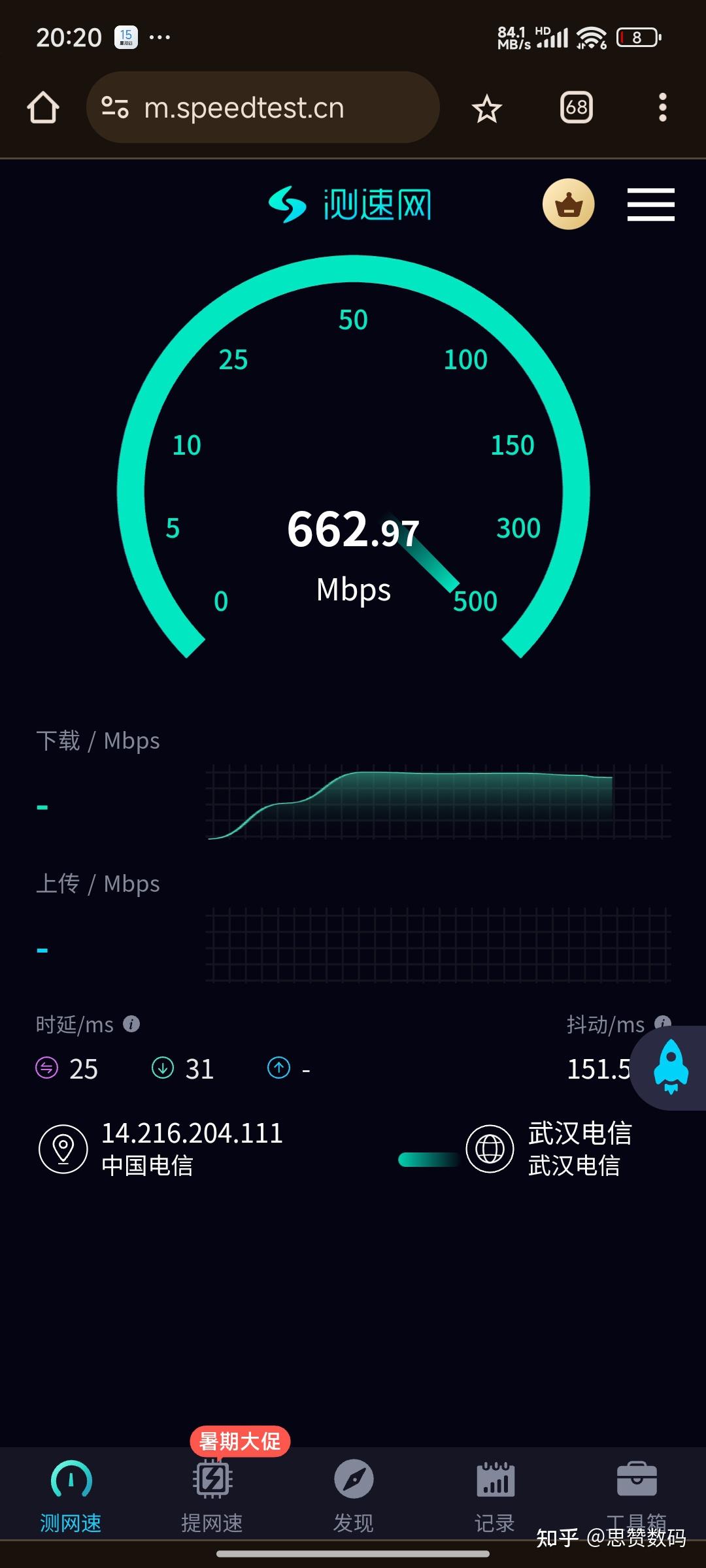 5G wifi速率2401M,2.4G 573M,信号跟我此前的TP-Link XDR3040体验差不多,放在120平米的屋子最右侧,手持手机站在最左侧的客厅,中间隔了几道墙,5G跟TP一样无法连接,2.4G比TP好,TP只能跑50~200kb,它能跑1~2m。得力于这点,屋内的全部智能家居设备响应都快了一些,偶尔掉线情况也没再出现。次卧隔了一道墙,站在次卧内关门测试跑出了600m~700m的速度。有意思的是,即使我手持手机在路由器旁测试,成绩也是在这个区间。