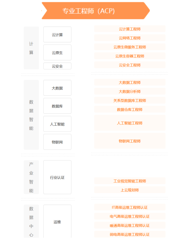 阿里云ACP是阿里云认证中的高级工程师,有云计算、大数据等多个认证方向,具体如下: