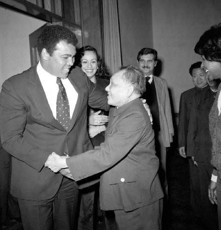 穆罕默德·阿里曾3次到中国宣传推广拳击运动,最终为1986年中国正式恢复已禁赛近30年的拳击运动发挥了重要作用。1979年12月19日,阿里首次应邀以美国体育大使的身份访华,目的是游说中国参加1984年第23届美国洛杉矶届奥运会。时任中国副总理的邓小平接见了阿里,美国媒体评价此次见面为“一双扭转乾坤的巨手,与一双所向无敌的大手紧紧地握在了一起”。 [26]