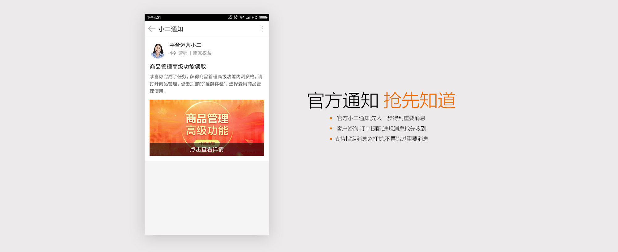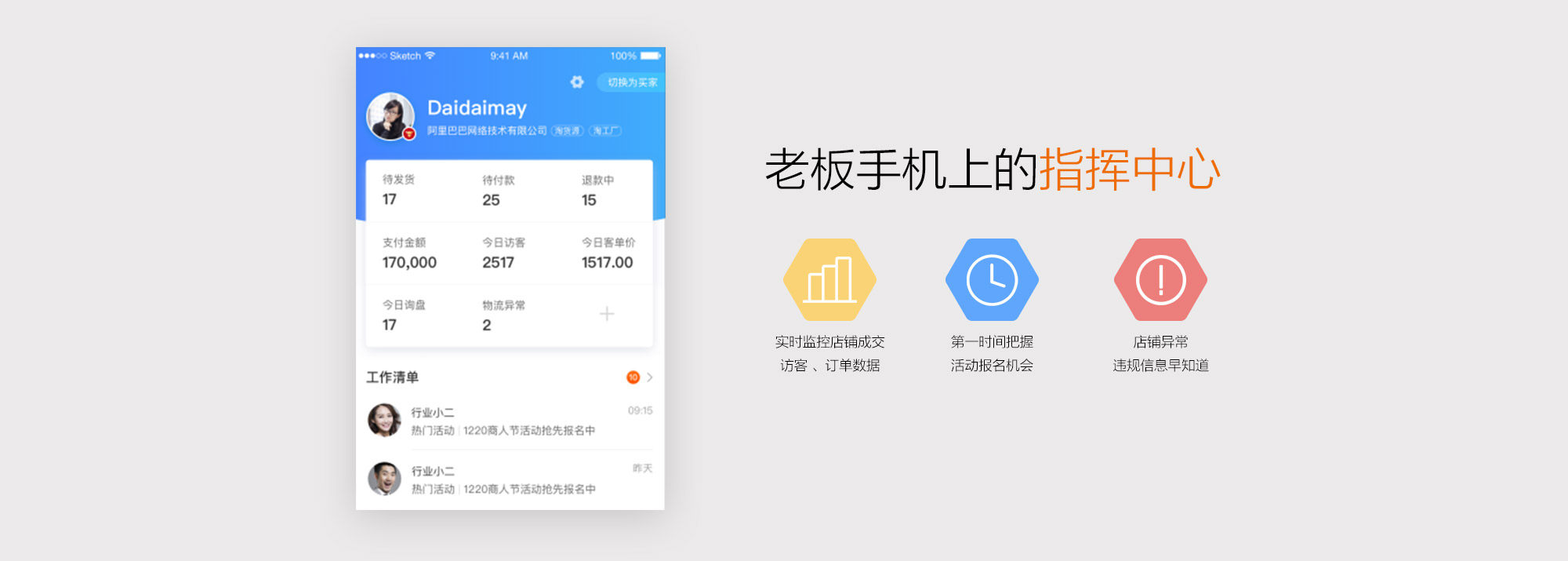 开网店,此刻,一个千牛,一个工作台,即可宝贝上下架,接单做销售和时时看数据,经营开店必备!
