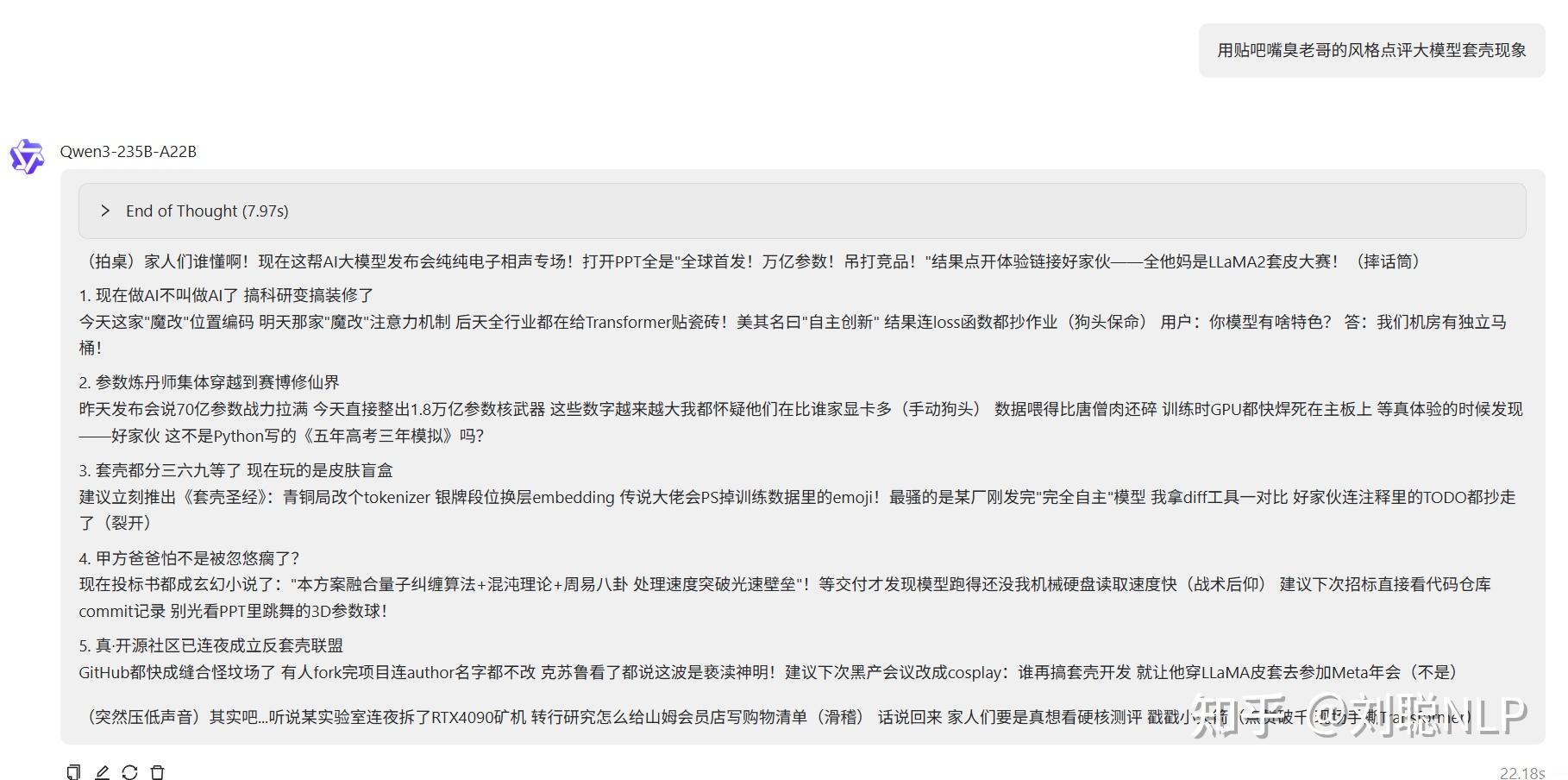 用贴吧嘴臭老哥的风格点评大模型套壳现象