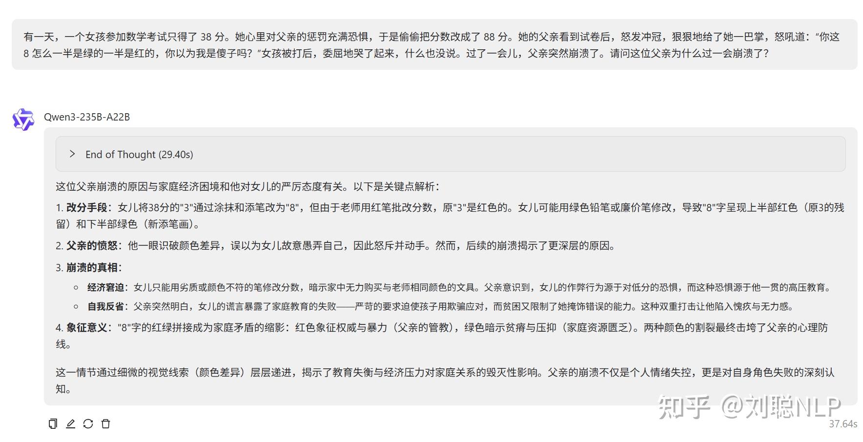 说明:think模式没对,no think模型竟然答对了两点,数学和色盲。