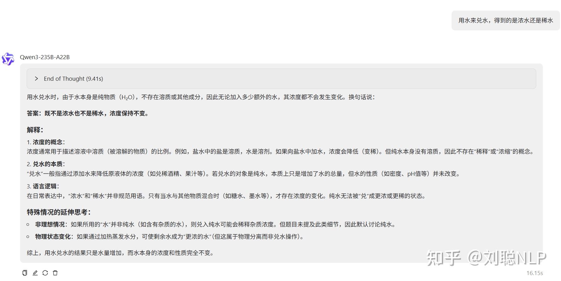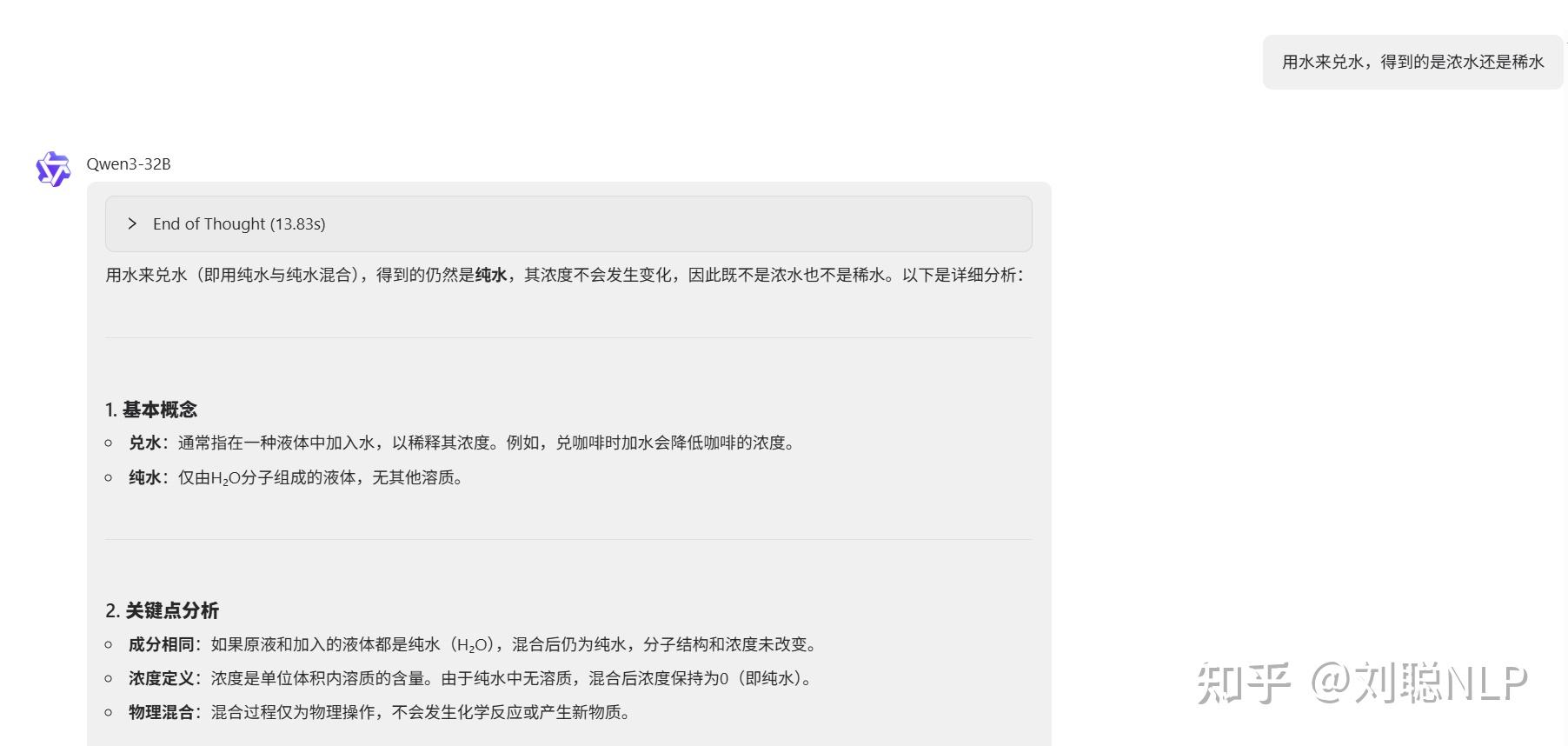 说明:结果正确,水还是水。