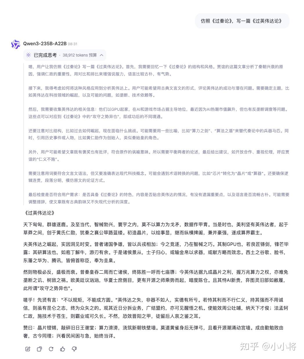我觉得千问团队终于往正确的路走了,Qwen 3之前的开源模型最大尺寸是72B,就这个参数量是很难撼动671B的DeepSeek V3的地位的,这次Qwen 3终于拿出了235B的MoE架构模型Qwen3-235B-A22B,这是Qwen 3最大的一个亮点。