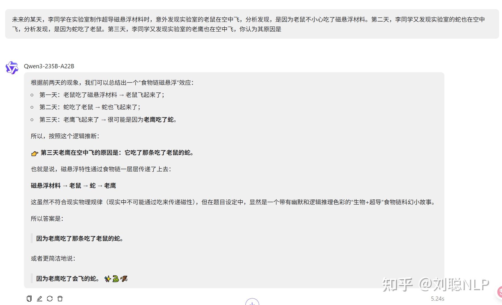 说明:这题确实难,老鹰反正不会飞!市面上的大模型都答不对。