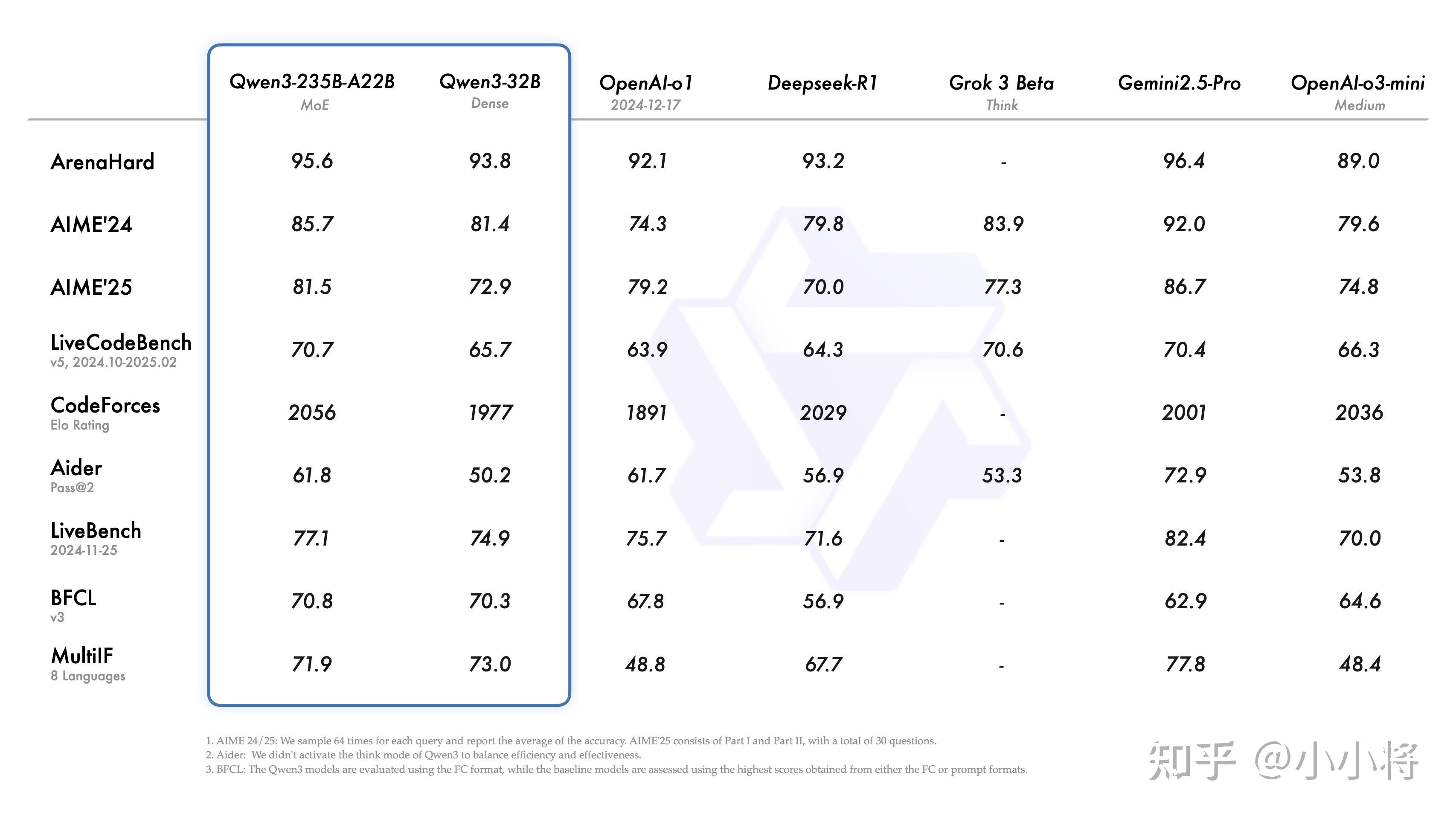 Qwen3-235B-A22B在代码、数学、通用能力等基准测试中,超过了DeepSeek-R1、o1、o3-mini-medium、Grok-3,参数量大就是好使!虽然不及谷歌最强推理模型 Gemini-2.5-Pro(以及o3),但是作为一个开源大模型已经很不错了。也为国产大模型点赞!